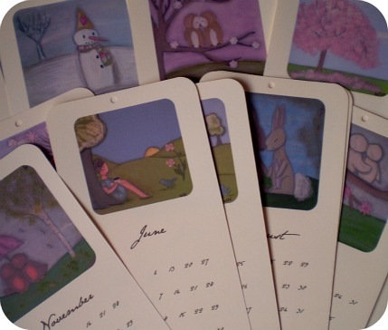 Niki is also new to me. Her latest project is a hand-made calendar. Each picture is original and designed so it can be removed to frame! Her work is whimsical and makes me smile. What a creative lady! She has this calender up for SALE!